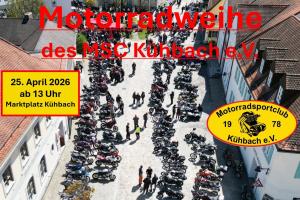 Jährliche Motorradweihe des MSC Kühbach. Fürs leibliche Wohl wird gesorgt, wir freuen uns auf Euch!